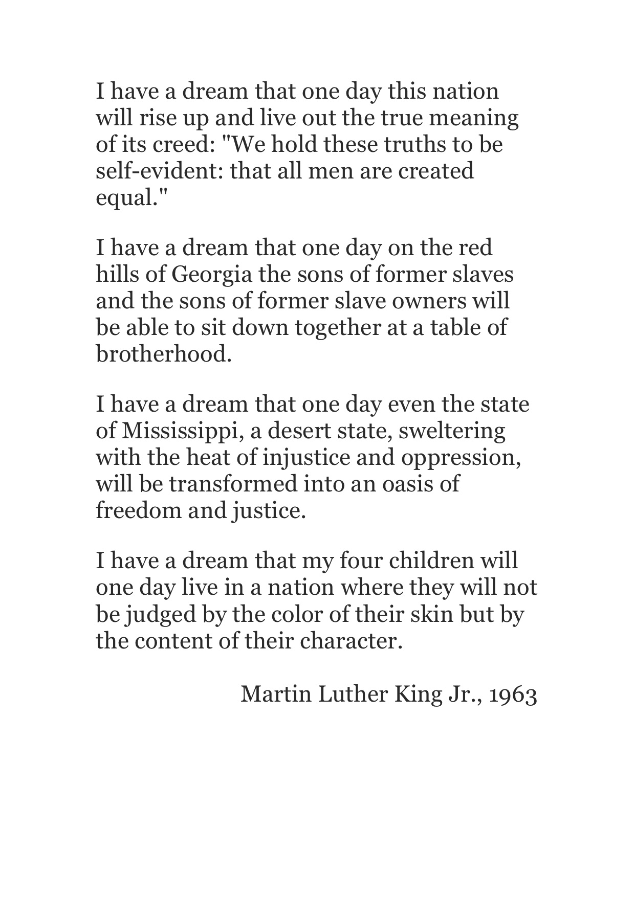 There are those who are asking the devotees of . Reprinted by arrangement with the heirs to the . I have a dream that one day every valley shall be exalted, and every hill and mountain shall be made low, the rough places will be made plain, . An older sister named christine king farris, and a younger brother named alfred daniel “a.d.” williams king. March on washington for jobs and freedom august .