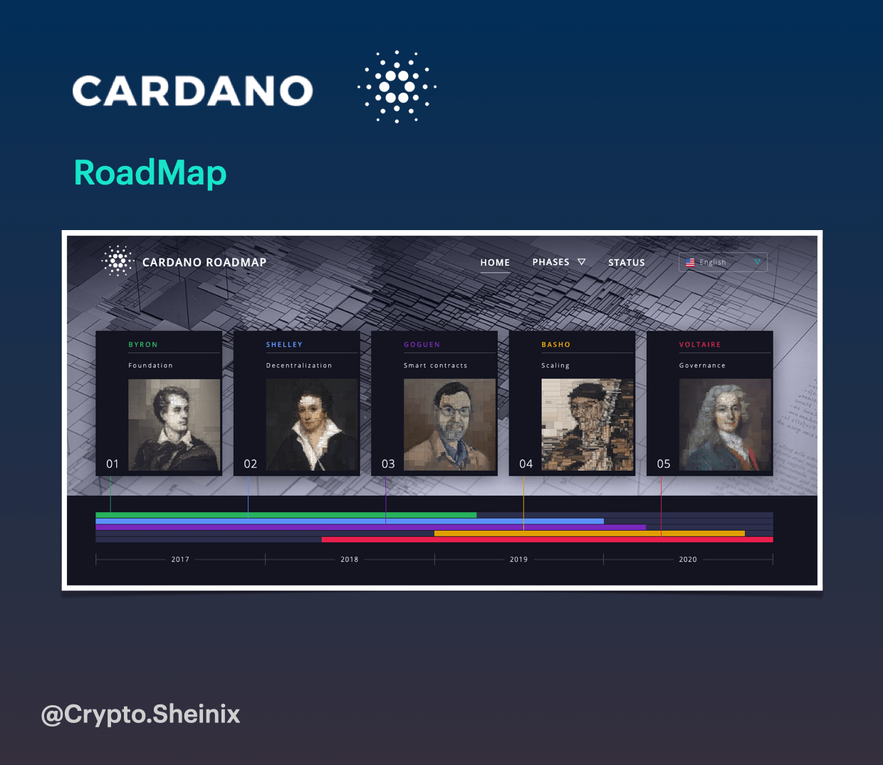 The cardano roadmap is a summary of cardano development, which has been organized into five eras: